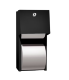 ASI Matte Black twin hide a roll toilet paper dispenser is surface mounted. This unit holds two rolls (5-1/4") diameter roughly 1800 sheets. Designed so that when bottom roll is used top roll should drop down in place. Product comes with theft resistant spindles. The product is stainless steel with a matte black powder coated finish. With a matte black finish this product offers a more sophisticated and bold look while being aesthetically appealing to the eye.