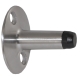 Cast stainless steel construction. The door stop base is 2-1/8" diameter with a 1-19/32" hole spacing. The stop projects out 2" with a rubber insert on the end of the stop. Also known as Bathroom Stall Door Stop. Manufacture part # 4123.