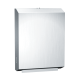 Dispenses 400 C-fold or 525 multi-fold paper towels without adjustment or adapters. Fabricated of 22 gauge stainless steel with #4 satin finish. Fitted with tumbler lock and heavy duty stainless steel piano hinge.